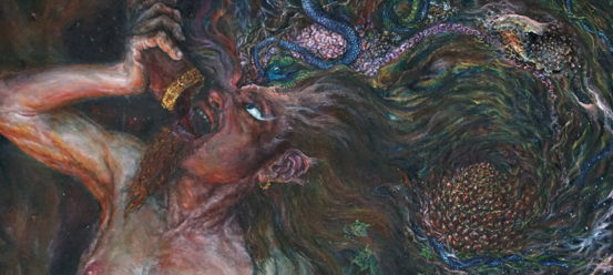 Hutter is a German painter, illustrator and author who studied at the University of Applied Sciences in Koln under Professor Marx, a painter himself who produced a number of challenging expressionist works. Michael has had many solo exhibitions in the last thirty years, in addition to providing illustrations for fantasy books, heavy metal albums and other media, and once said of his paintings: “In my opinion truth is somehow an illusion anyway. I mix that with my obsession, passions, desires and fears and choke what happens in the abyss of my personality back on the surface.” (check out this interview on the Grey Dog Tales website)